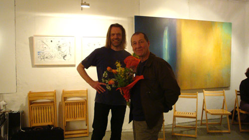 20.04.2010, Galerie Pich, München nach dem Konzert, Gunter Pretzel mit Gert Vangermain, dem ausstellenden Künstler